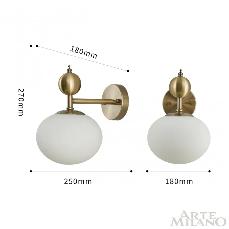 Для работы бра требуется одна лампа с цоколем E14 (не входит в комплект), что позволяет выбрать наиболее подходящий вариант освещения. Это делает бра Arte Milano 270307-1B GD идеальным решением для создания уютной атмосферы в вашем доме.