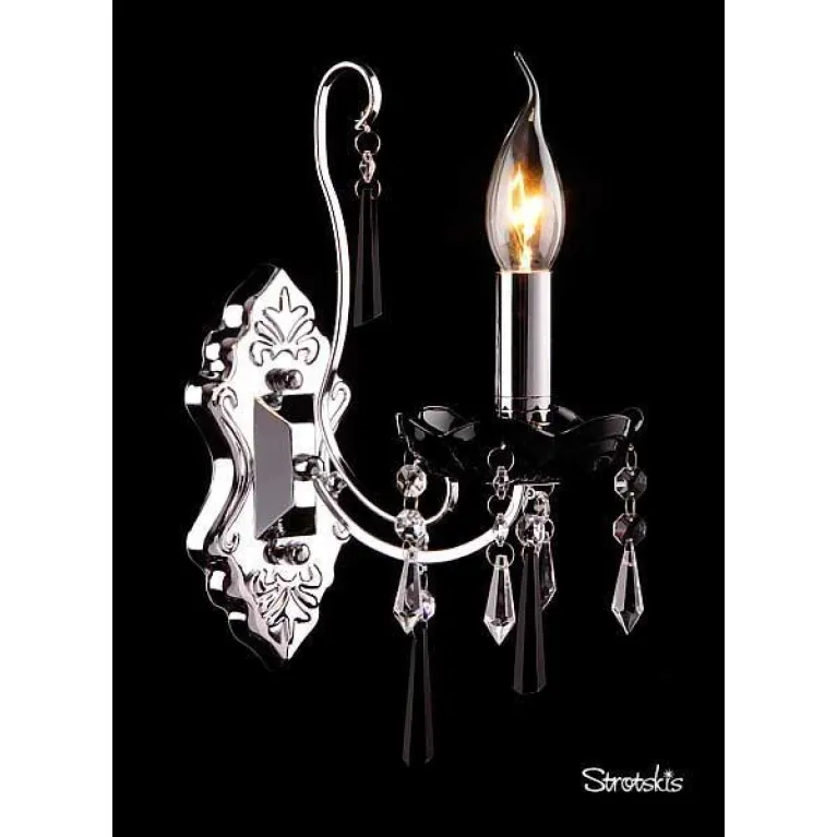Бра Eurosvet 2026/1 хром/черный хрусталь Strotskis российского производителя Eurosvet входит в коллекцию «2026». Это отличный выбор для гостиной. Модель оформлена в стиле классика, устанавливается на стену и обеспечивает приятное для глаз освещение суммарной мощностью 60 Вт. Осветительный прибор 2026/1 хром/черный хруста с плафонами защищен от пыли и влаги в соответствии со стандартом IP20. Цена при заказе в интернет-магазине «Иллюзия света» – 3 330 ₽.