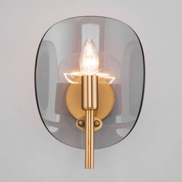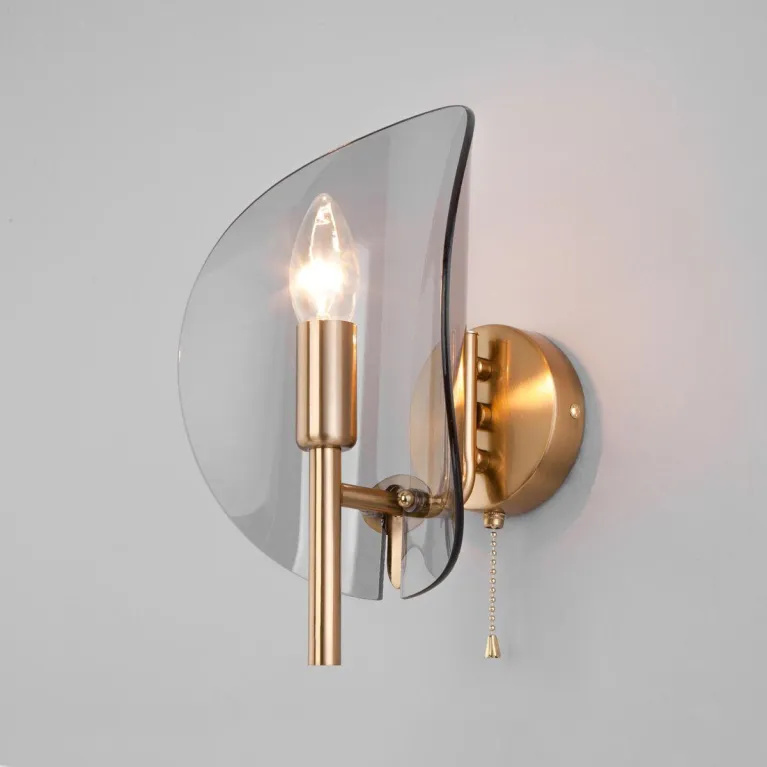 Корпус светильника изготовлен из прочного металла с латунным покрытием, которое придаёт изделию элегантный и утонченный вид. Плафон из белого матового стекла обеспечивает мягкое и равномерное рассеивание света, создавая приятное освещение в помещении.