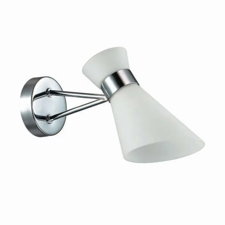 Корпус бра изготовлен из прочного металла с хромированным покрытием, что придаёт изделию современный и элегантный вид. Плафон из белого матового стекла обеспечивает мягкое и равномерное рассеивание света, создавая приятную атмосферу в помещении.