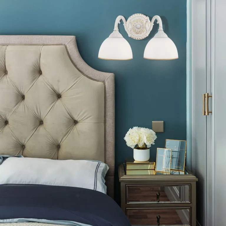 Бра Arte Milano AM346410 346410/2W WT+G итальянского производителя Arte Milano входит в коллекцию «AM346410». Это отличный выбор для спальни. Модель оформлена в классическом стиле, устанавливается на стену и обеспечивает приятное для глаз освещение суммарной мощностью 80 Вт. Осветительный прибор 346410/2W WT+G с стеклянными плафонами белого цвета защищен от пыли и влаги в соответствии со стандартом IP20. Цена при заказе в интернет-магазине «Иллюзия света» – 4 704 ₽.