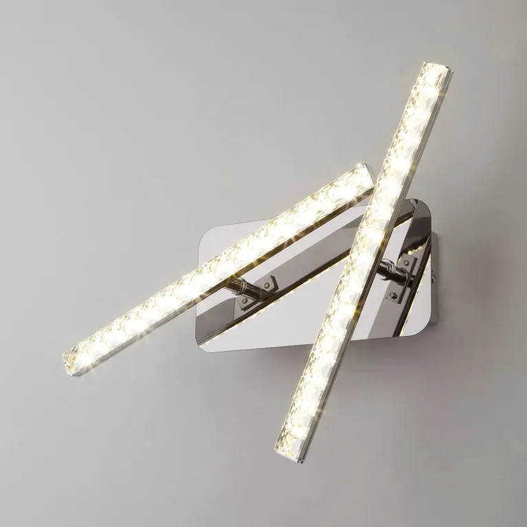 Настенный светильник Eurosvet 90041/2 хром российского производителя Eurosvet входит в коллекцию «Soprano». Это отличный выбор для гостиной. Модель оформлена в современном стиле, устанавливается на стену и обеспечивает приятное для глаз освещение суммарной мощностью 8 Вт. Осветительный прибор 90041/2 хром с хрустальными плафонами прозрачного цвета защищен от пыли и влаги в соответствии со стандартом IP20. Цена при заказе в интернет-магазине «Иллюзия света» – 2 900 ₽.