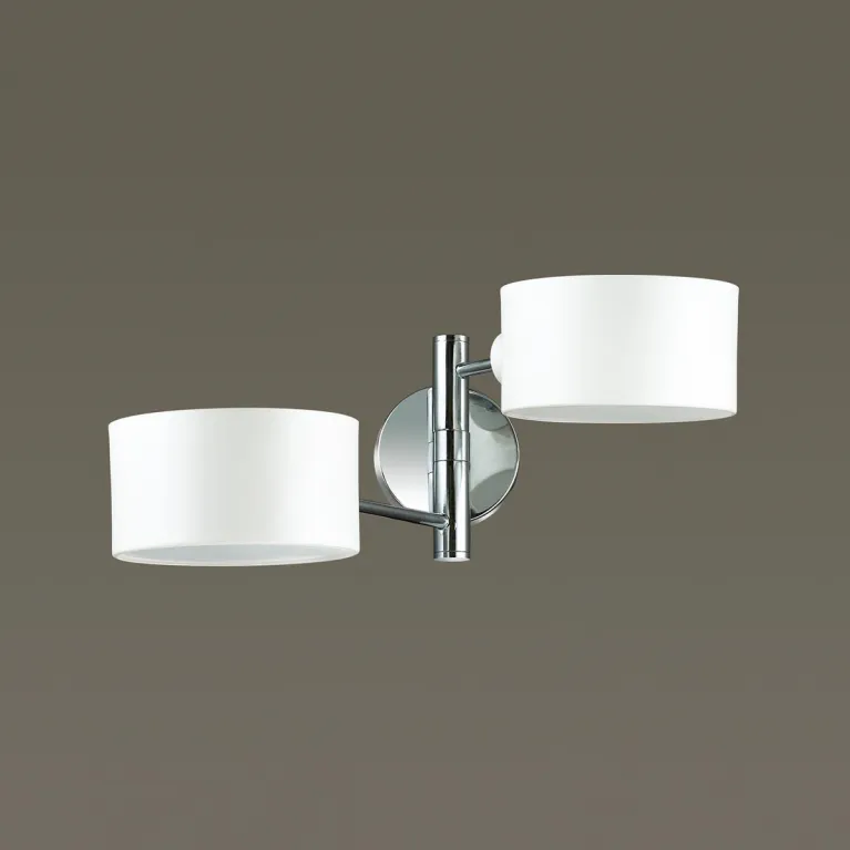 Корпус светильника изготовлен из качественного металла с хромированным покрытием, что придаёт ему современный и стильный вид. Плафон из белого матового стекла обеспечивает равномерное распределение света и создаёт приятную атмосферу в помещении. Бра имеет два источника света с цоколем E14, что позволяет использовать как традиционные лампы накаливания, так и энергосберегающие или светодиодные лампы, в зависимости от ваших предпочтений и потребностей.