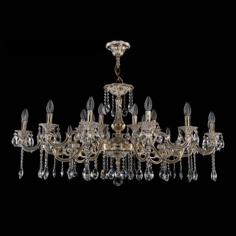 Преобладающий цвет люстры: Золотой, арматуры: Золото; материал изготовления арматуры: Металл, размеры, мм: / высота 650 / диаметр 1250. Общая мощность – 840 Ватт, а максимальная площадь освещения до 46,7 м2. Основной тип ламп, предусмотренный производителем: Накаливания с цоколем E14. В зависимости от предпочтений можно использовать лампы теплового, холодного или нейтрального света, за исключением люстр с типом цоколя LED.