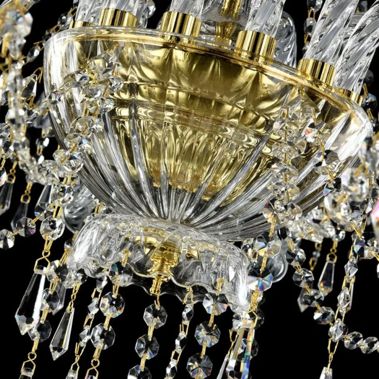 Преобладающий цвет люстры: Золотой, арматуры: Золото; материал изготовления арматуры: Металл, размеры, мм: Общая мощность – Ватт. Основной тип ламп, предусмотренный производителем: Накаливания с цоколем E14. В зависимости от предпочтений можно использовать лампы теплового, холодного или нейтрального света, за исключением люстр с типом цоколя LED.