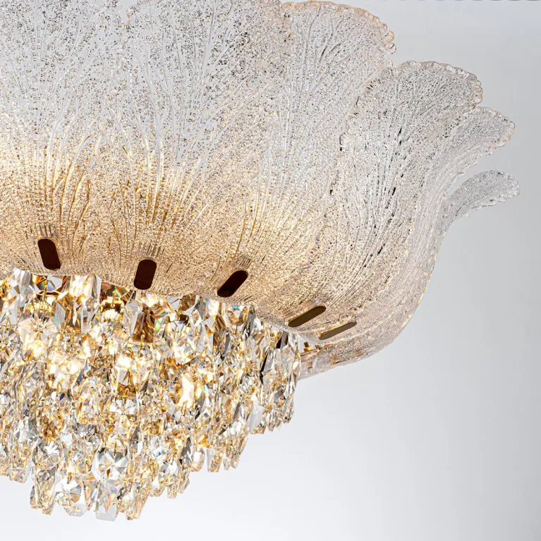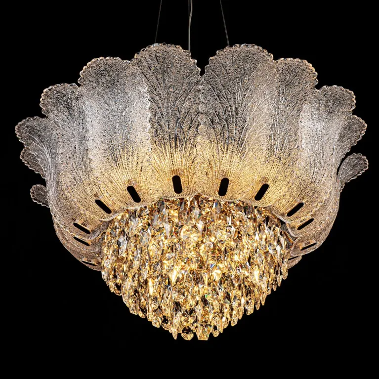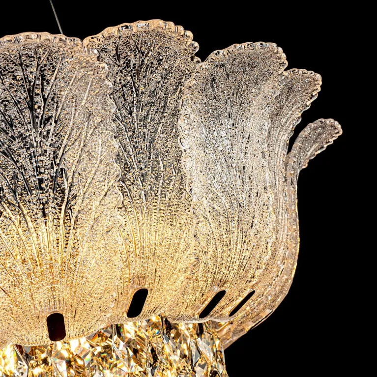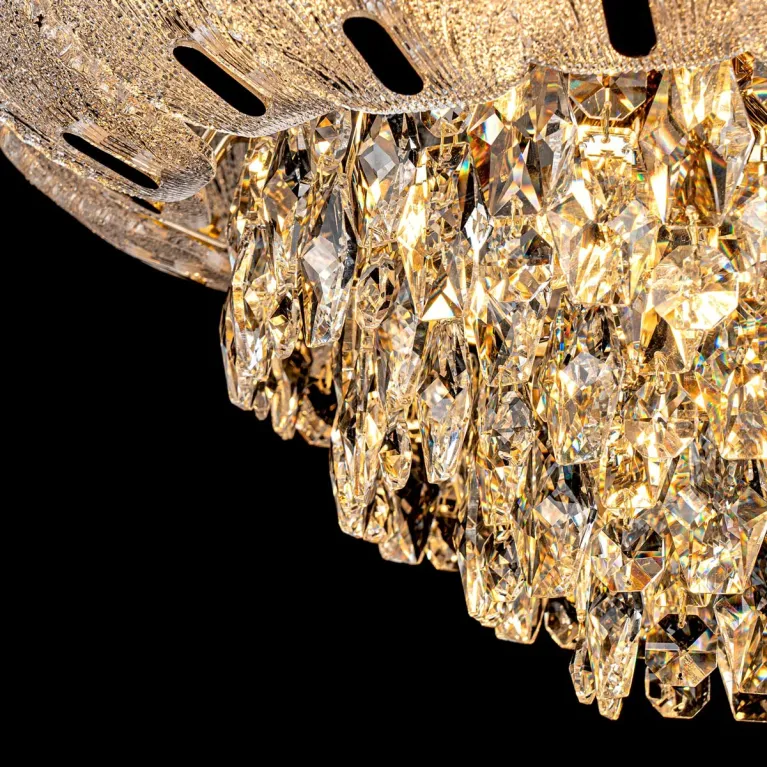 Преобладающий цвет плафонов: Прозрачный, арматуры: Золото; материал изготовления арматуры: Металл, размеры, мм: / высота 1400 / диаметр 620. Общая мощность – 520 Ватт, а максимальная площадь освещения до 17 м2. Основной тип ламп, предусмотренный производителем: Накаливания с цоколем E14. В зависимости от предпочтений можно использовать лампы теплового, холодного или нейтрального света, за исключением люстр с типом цоколя LED.