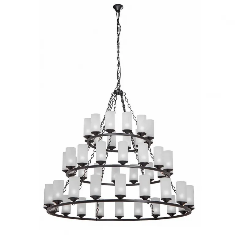 Светильник изготовлен из прочного металла и имеет черное матовое покрытие. Плафоны выполнены из белого матового стекла, которое обеспечивает мягкое и равномерное рассеивание света. Люстра рассчитана на использование одной лампы с цоколем E27, что позволяет использовать как традиционные лампы накаливания, так и энергосберегающие или светодиодные лампы, в зависимости от ваших предпочтений и потребностей.