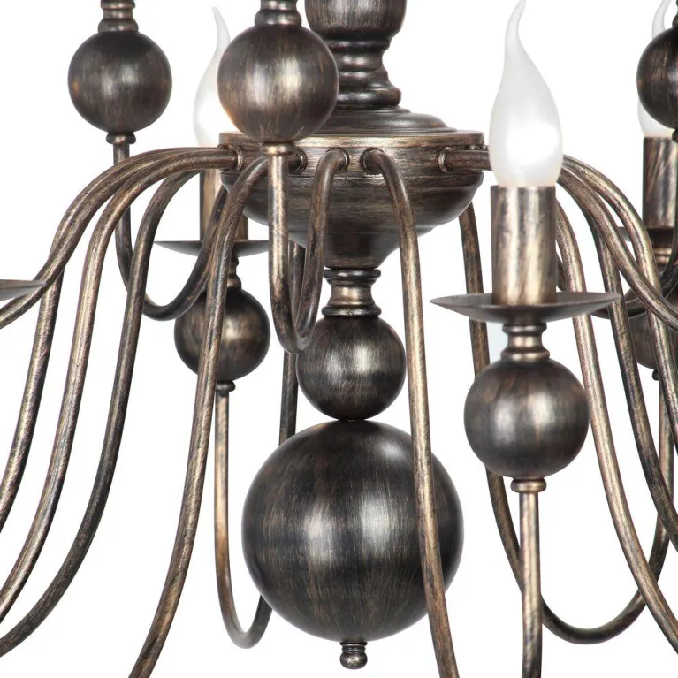 Люстра выполнена из прочного металла и имеет эффектное хромированное покрытие. Она оснащена семью источниками света с цоколем E14, что позволяет использовать различные типы ламп, включая энергосберегающие и светодиодные. Суммарная мощность ламп — 420 Вт, что обеспечивает яркое и равномерное освещение пространства площадью до 30 квадратных метров.