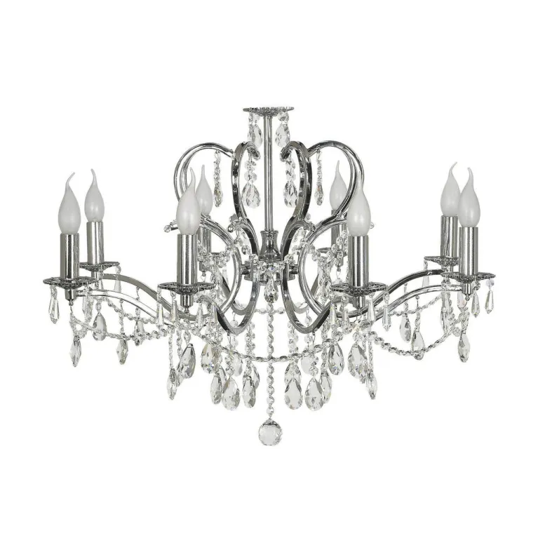 Люстра изготовлена из прочного металла с эффектным хромированным покрытием, которое придаёт ей современный вид и долговечность. Плафоны из белого матового стекла обеспечивают мягкое и равномерное рассеивание света, создавая приятное освещение в помещении.