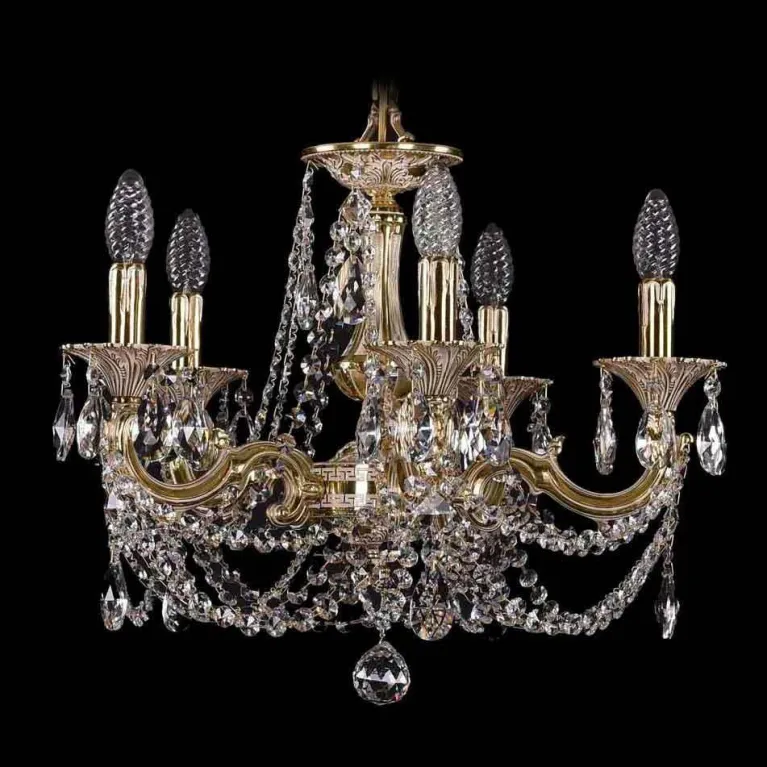 Преобладающий цвет люстры: Золотой, арматуры: Золото; материал изготовления арматуры: Латунь, размеры, мм: / высота 400 / диаметр 500. Общая мощность – 200 Ватт, а максимальная площадь освещения до 11,1 м2. Основной тип ламп, предусмотренный производителем: Накаливания с цоколем E14. В зависимости от предпочтений можно использовать лампы теплового, холодного или нейтрального света, за исключением люстр с типом цоколя LED.