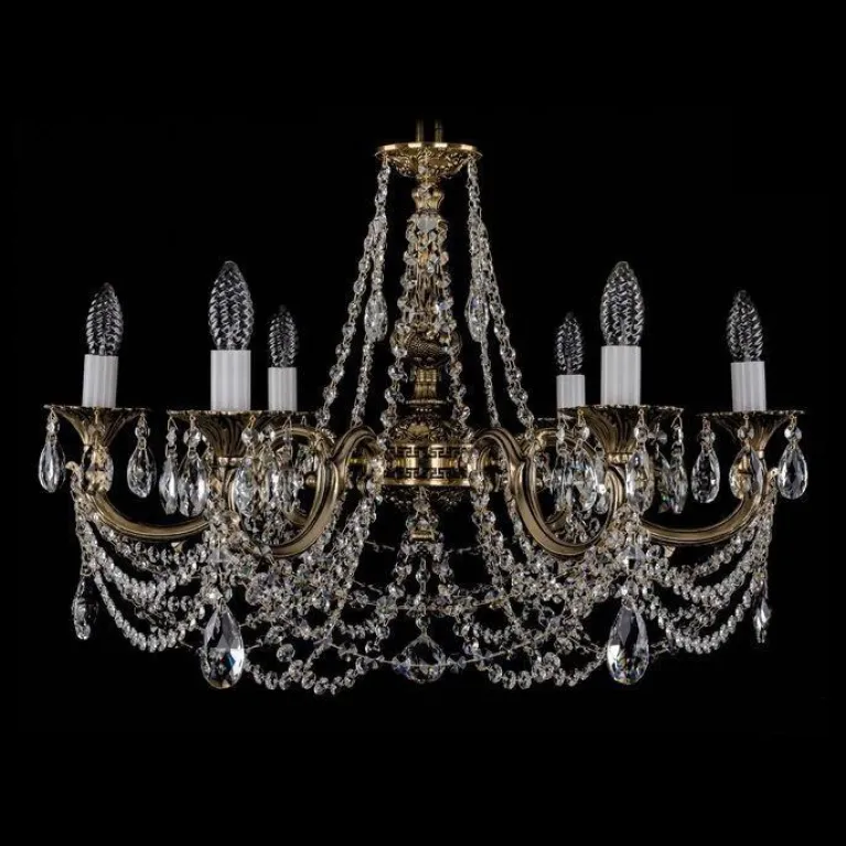 Преобладающий цвет люстры: Золотой, арматуры: Золото; материал изготовления арматуры: Металл, размеры, мм: длина 700 / высота 550 Общая мощность – 240 Ватт, а максимальная площадь освещения до 13,3 м2. Основной тип ламп, предусмотренный производителем: Накаливания с цоколем E14. В зависимости от предпочтений можно использовать лампы теплового, холодного или нейтрального света, за исключением люстр с типом цоколя LED.