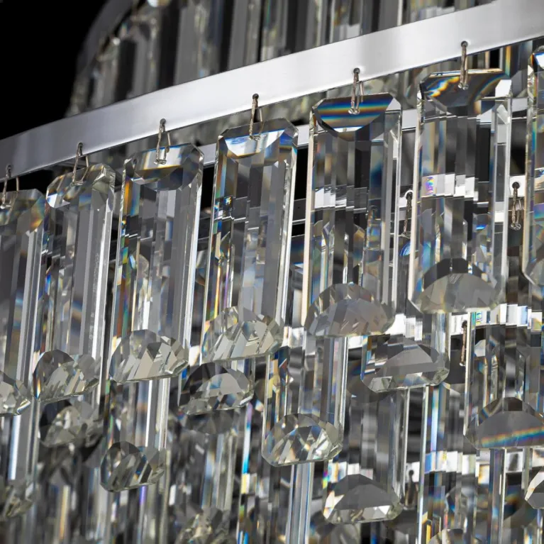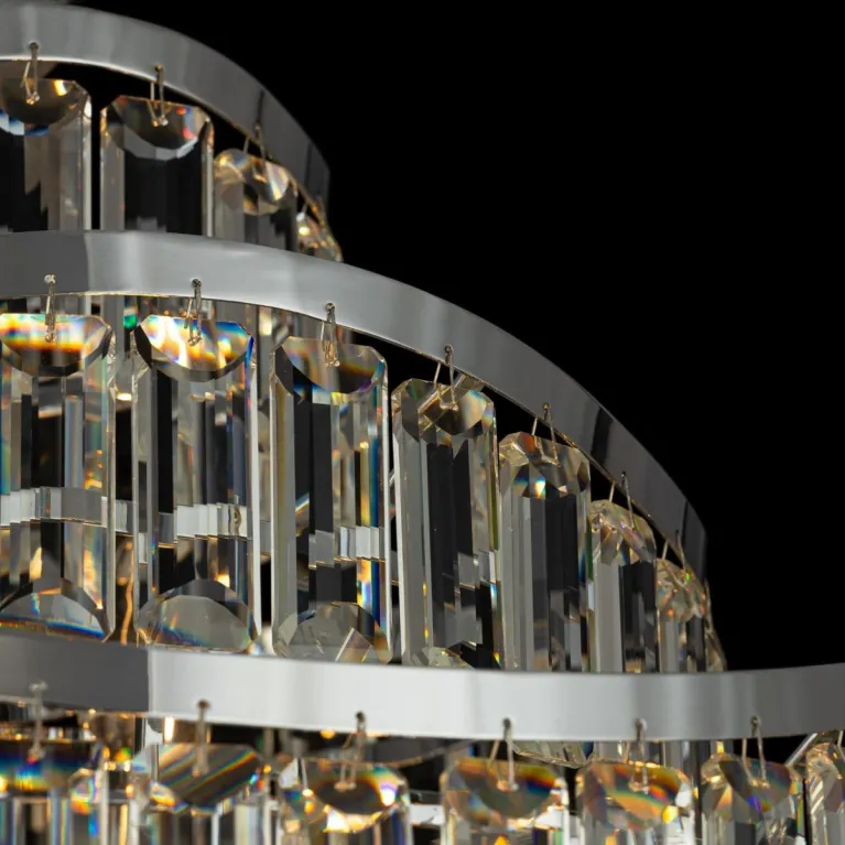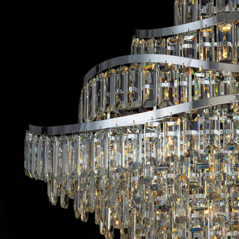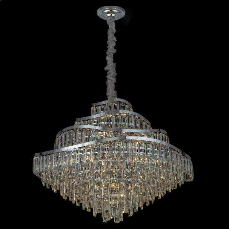 Преобладающий цвет плафонов: Прозрачный, арматуры: Хром; материал изготовления арматуры: Металл, размеры, мм: / высота 1730 / диаметр 780. Общая мощность – 1000 Ватт, а максимальная площадь освещения до 33 м2. Основной тип ламп, предусмотренный производителем: Накаливания с цоколем E14. В зависимости от предпочтений можно использовать лампы теплового, холодного или нейтрального света, за исключением люстр с типом цоколя LED.