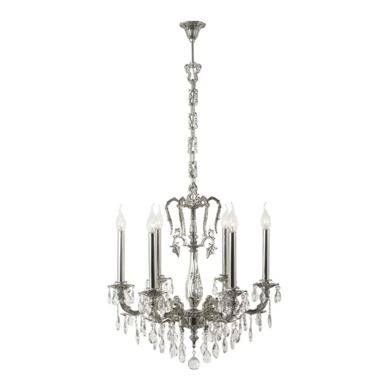 Преобладающий цвет люстры: Серебро, арматуры: Серебро; материал изготовления арматуры: Металл, размеры, мм: / высота 500 / диаметр 530. Общая мощность – 240 Ватт, а максимальная площадь освещения до 13,3 м2. Основной тип ламп, предусмотренный производителем: Накаливания с цоколем E14. В зависимости от предпочтений можно использовать лампы теплового, холодного или нейтрального света, за исключением люстр с типом цоколя LED.