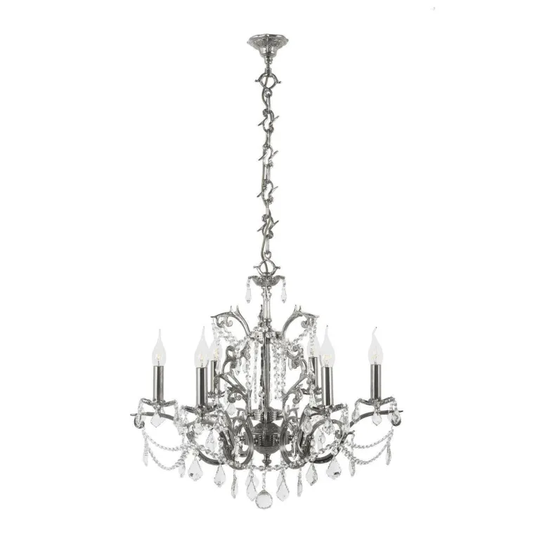 Преобладающий цвет люстры: Матовый никель, арматуры: Матовый никель; материал изготовления арматуры: Металл, размеры, мм: / высота 600 / диаметр 740. Общая мощность – 240 Ватт, а максимальная площадь освещения до 13,3 м2. Основной тип ламп, предусмотренный производителем: Накаливания с цоколем E14. В зависимости от предпочтений можно использовать лампы теплового, холодного или нейтрального света, за исключением люстр с типом цоколя LED.