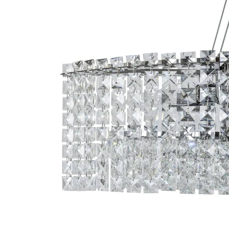 Преобладающий цвет плафонов: Прозрачный, арматуры: Хром; материал изготовления арматуры: Металл, размеры, мм: длина 890 / ширина 240 / высота 1090 Общая мощность – 240 Ватт, а максимальная площадь освещения до 12 м2. Основной тип ламп, предусмотренный производителем: Накаливания с цоколем E14. В зависимости от предпочтений можно использовать лампы теплового, холодного или нейтрального света, за исключением люстр с типом цоколя LED.