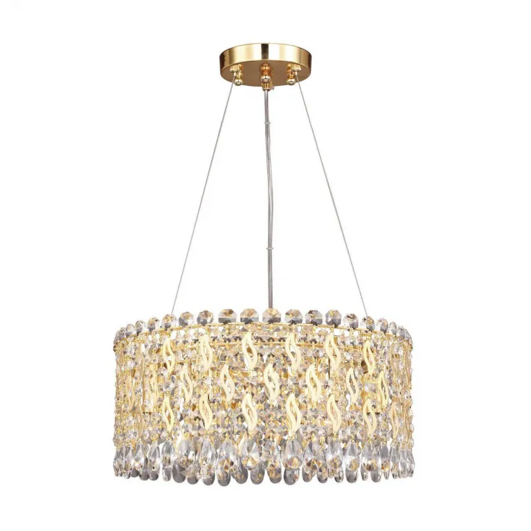 Преобладающий цвет люстры: Золотой, плафонов: Прозрачный, арматуры: Золото; материал изготовления арматуры: Металл, размеры, мм: / высота 200 / диаметр 430. Общая мощность – 240 Ватт, а максимальная площадь освещения до 13,3 м2. Основной тип ламп, предусмотренный производителем: Накаливания с цоколем E14. В зависимости от предпочтений можно использовать лампы теплового, холодного или нейтрального света, за исключением люстр с типом цоколя LED.