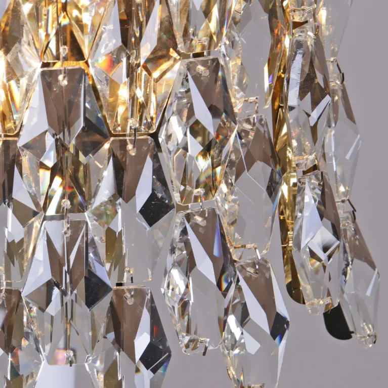Преобладающий цвет плафонов: Прозрачный, арматуры: Золото; материал изготовления арматуры: Металл, размеры, мм: / высота 420 / диаметр 800. Общая мощность – 720 Ватт. Основной тип ламп, предусмотренный производителем: Накаливания с цоколем E14. В зависимости от предпочтений можно использовать лампы теплового, холодного или нейтрального света, за исключением люстр с типом цоколя LED.