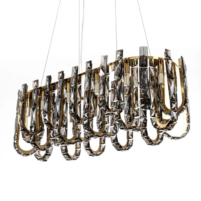 Преобладающий цвет плафонов: Дымчатый, арматуры: Латунь; материал изготовления арматуры: Металл, размеры, мм: длина 800 / ширина 320 / высота 1400 Общая мощность – Ватт, а максимальная площадь освещения до 17 м2. Основной тип ламп, предусмотренный производителем: Светодиодная с цоколем G9. В зависимости от предпочтений можно использовать лампы теплового, холодного или нейтрального света, за исключением люстр с типом цоколя LED.