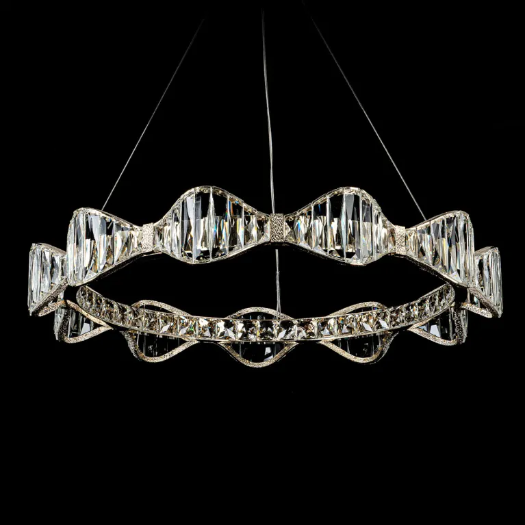 Преобладающий цвет плафонов: Прозрачный, арматуры: Шампань; материал изготовления арматуры: Металл, размеры, мм: / ширина 90 / высота 1850 / диаметр 800. Общая мощность – 100 Ватт, а максимальная площадь освещения до 17 м2. Основной тип ламп, предусмотренный производителем: Светодиодная с цоколем LED. В зависимости от предпочтений можно использовать лампы теплового, холодного или нейтрального света, за исключением люстр с типом цоколя LED.