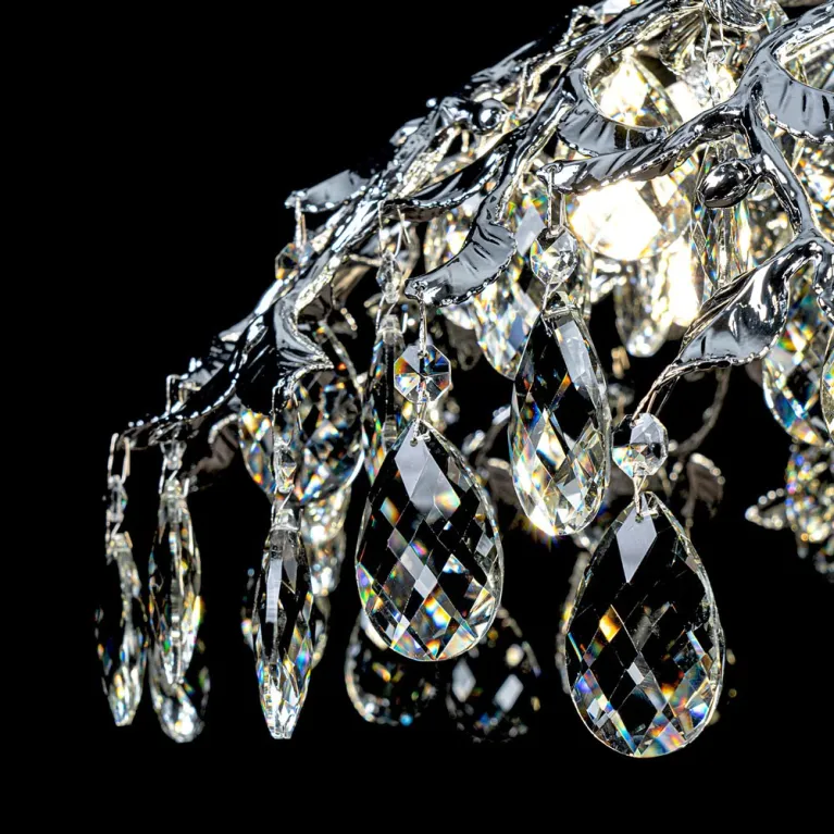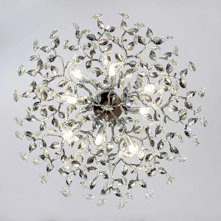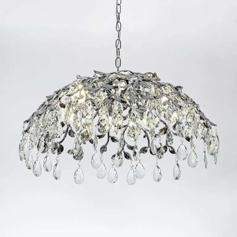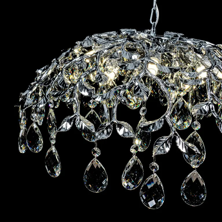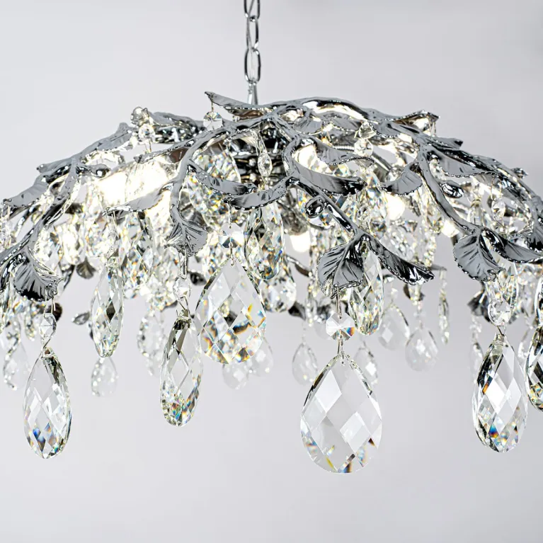 Преобладающий цвет плафонов: Прозрачный, арматуры: Хром; материал изготовления арматуры: Металл, размеры, мм: / высота 840 / диаметр 600. Общая мощность – Ватт, а максимальная площадь освещения до 15 м2. Основной тип ламп, предусмотренный производителем: Светодиодная с цоколем G9. В зависимости от предпочтений можно использовать лампы теплового, холодного или нейтрального света, за исключением люстр с типом цоколя LED.