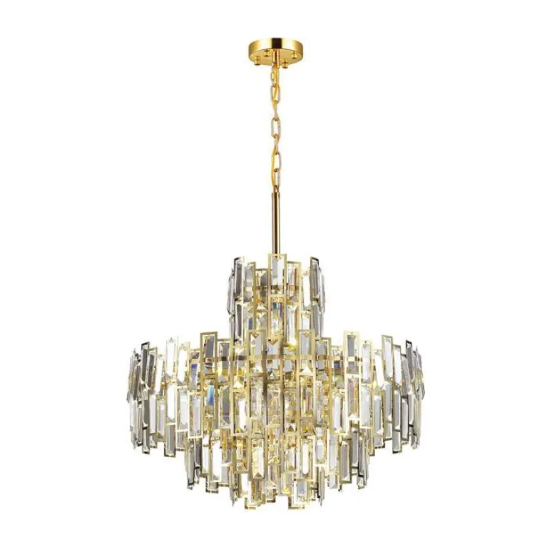 Преобладающий цвет люстры: Золотой, плафонов: Прозрачный, арматуры: Золото; материал изготовления арматуры: Металл, размеры, мм: / высота 570 / диаметр 600. Общая мощность – 320 Ватт. Основной тип ламп, предусмотренный производителем: Накаливания с цоколем E14. В зависимости от предпочтений можно использовать лампы теплового, холодного или нейтрального света, за исключением люстр с типом цоколя LED.