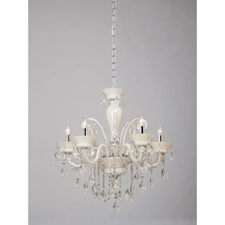 Преобладающий цвет люстры: Бежевый, арматуры: Бежевый; материал изготовления арматуры: Металл, размеры, мм: длина 280 / ширина 420 / высота 560 Общая мощность – 300 Ватт, а максимальная площадь освещения до 15 м2. Основной тип ламп, предусмотренный производителем: Накаливания с цоколем E14. В зависимости от предпочтений можно использовать лампы теплового, холодного или нейтрального света, за исключением люстр с типом цоколя LED.