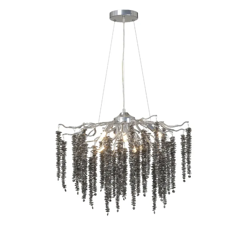 Люстра имеет регулируемую высоту подвеса, что позволяет адаптировать её под разные типы помещений. Монтаж на все виды потолков — натяжные, подвесные, бетонные — делает эту модель удобной для использования в различных интерьерах. Для подключения люстры вам понадобится 7 ламп с цоколем E14, что обеспечивает яркое и равномерное освещение пространства.