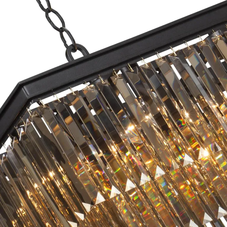 Люстра выполнена в классическом стиле и украшена хрустальными элементами, которые придают ей неповторимый шарм и блеск. Она оснащена 12 источниками света с цоколем E14, что позволяет использовать различные типы ламп, включая энергосберегающие и светодиодные.