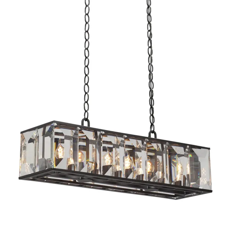 Преобладающий цвет люстры: Черный, плафонов: Прозрачный, арматуры: Черный; материал изготовления арматуры: Металл, размеры, мм: длина 906 / ширина 265 / высота 1500 Общая мощность – 420 Ватт, а максимальная площадь освещения до 21 м2. Основной тип ламп, предусмотренный производителем: Накаливания с цоколем E14. В зависимости от предпочтений можно использовать лампы теплового, холодного или нейтрального света, за исключением люстр с типом цоколя LED.