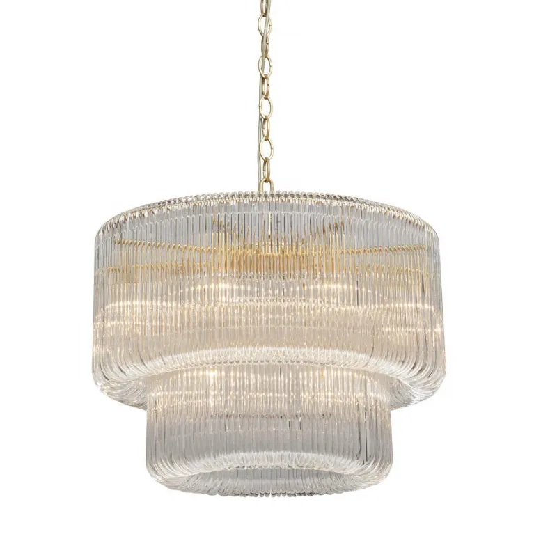 Подвесная конструкция позволяет регулировать высоту люстры, что делает её удобной для установки в помещениях с разными высотами потолков. Надежное крепление гарантирует стабильность и безопасность в эксплуатации.