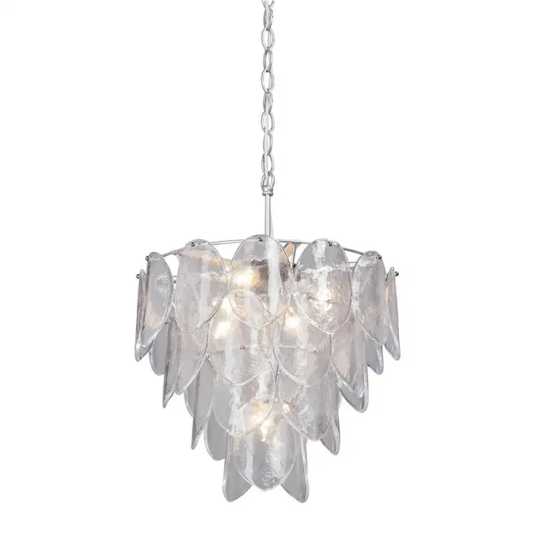 Преобладающий цвет люстры: Серебро, плафонов: Прозрачный, арматуры: Серебро; материал изготовления арматуры: Металл, размеры, мм: / высота 1860 / диаметр 485. Общая мощность – 280 Ватт, а максимальная площадь освещения до 14 м2. Основной тип ламп, предусмотренный производителем: Накаливания с цоколем E14. В зависимости от предпочтений можно использовать лампы теплового, холодного или нейтрального света, за исключением люстр с типом цоколя LED.