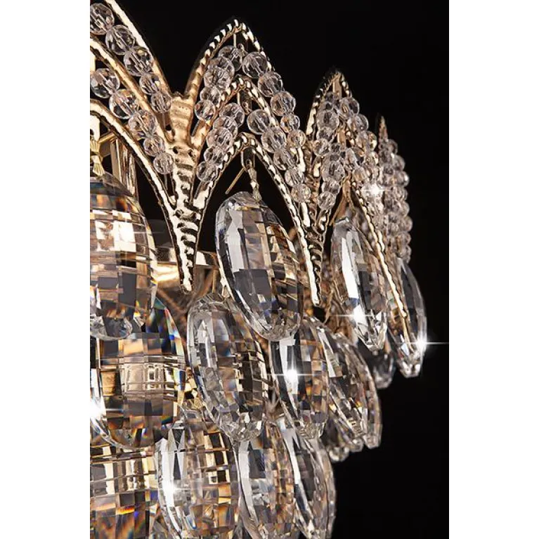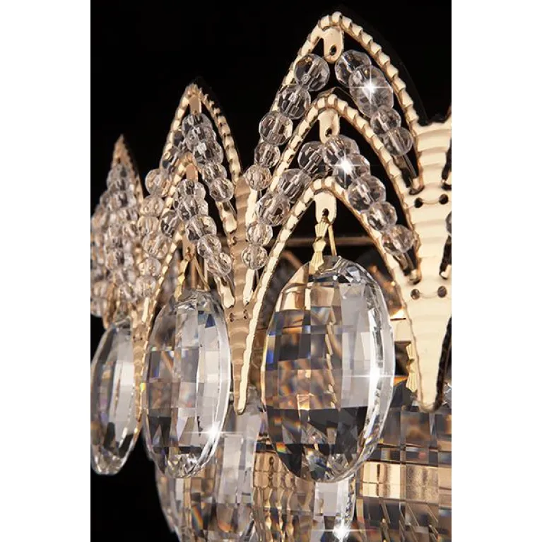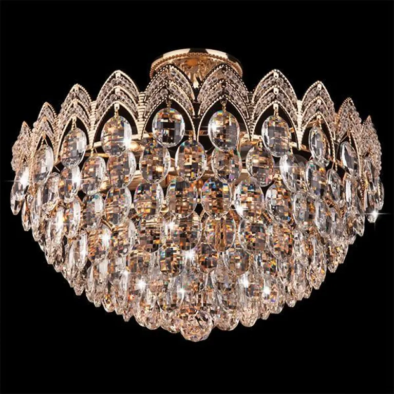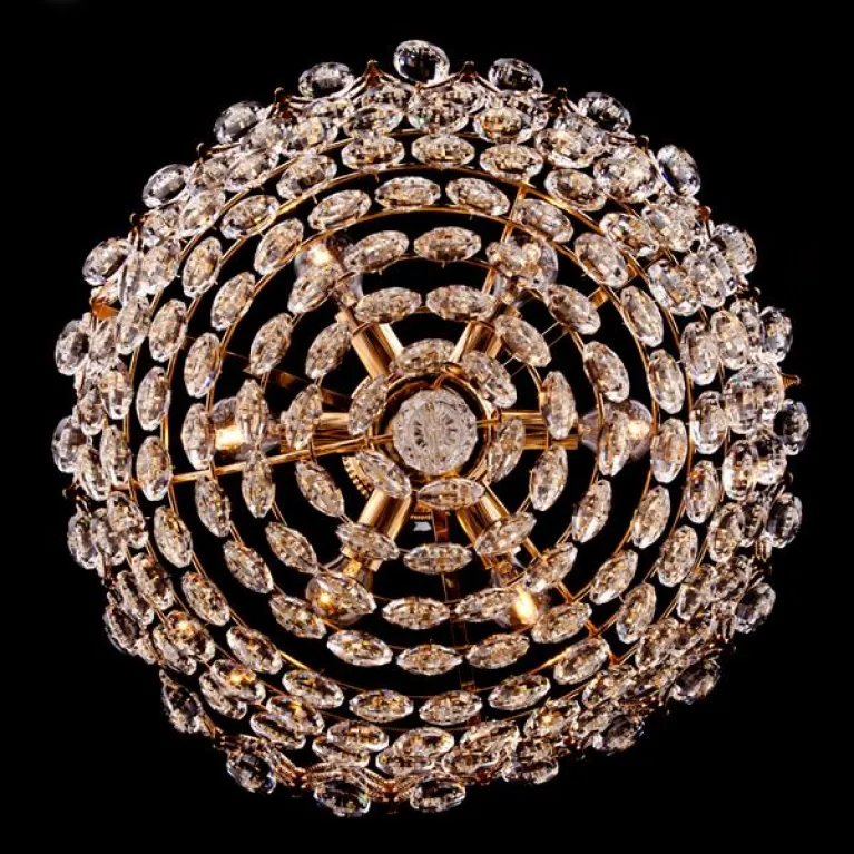 Преобладающий цвет люстры: Золото, арматуры: Золото; материал изготовления арматуры: Металл, размеры, мм: / высота 330 / диаметр 460. Общая мощность – 360 Ватт, а максимальная площадь освещения до 29 м2. Основной тип ламп, предусмотренный производителем: Накаливания с цоколем E14. В зависимости от предпочтений можно использовать лампы теплового, холодного или нейтрального света, за исключением люстр с типом цоколя LED.