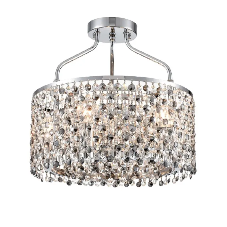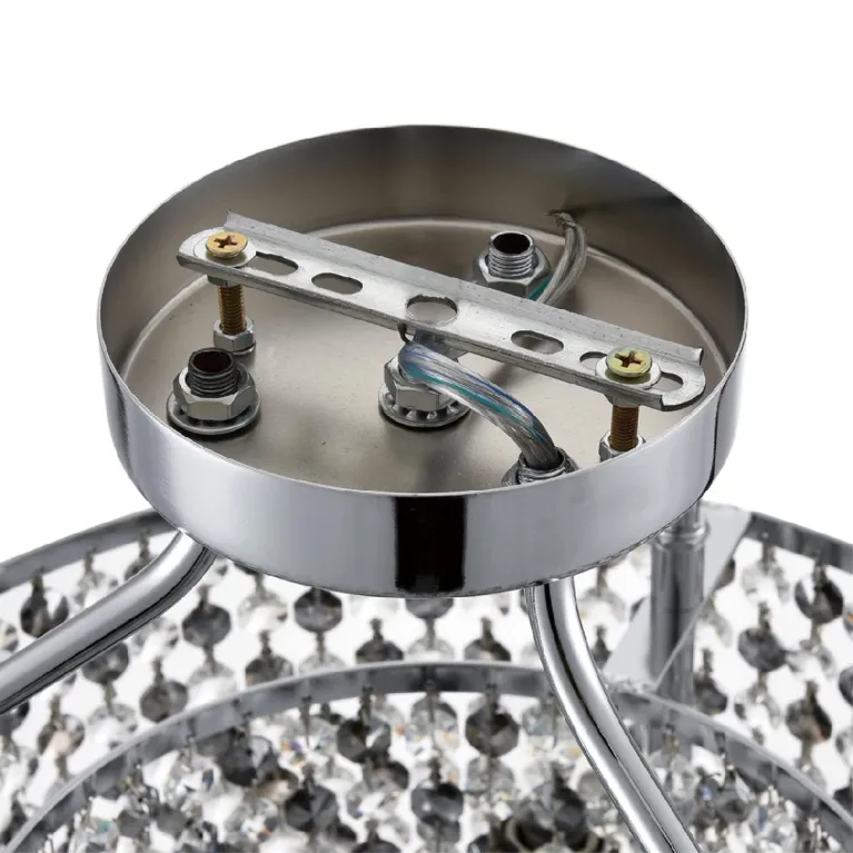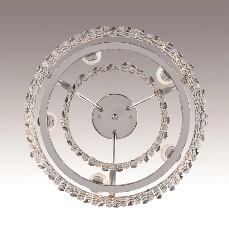 Преобладающий цвет плафонов: Прозрачный, арматуры: Хром; материал изготовления арматуры: Металл, размеры, мм: / высота 385 / диаметр 400. Общая мощность – 200 Ватт, а максимальная площадь освещения до 10 м2. Основной тип ламп, предусмотренный производителем: Накаливания с цоколем E14. В зависимости от предпочтений можно использовать лампы теплового, холодного или нейтрального света, за исключением люстр с типом цоколя LED.