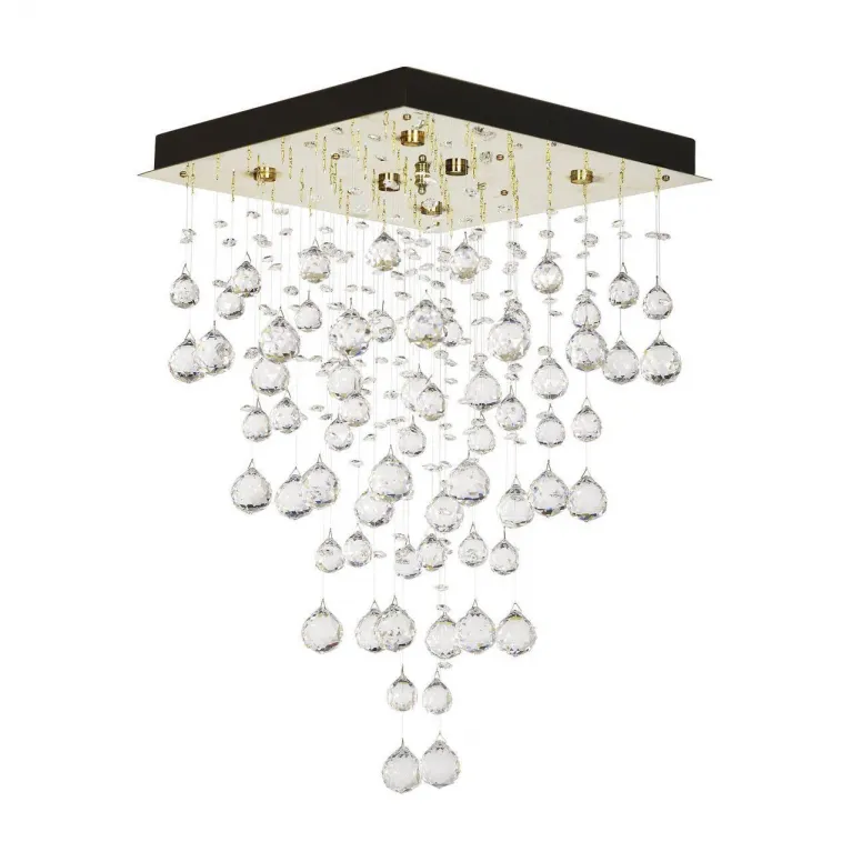 Корпус люстры выполнен из высококачественного металла и имеет стильное гальваническое покрытие золото. Плафоны изготовлены из прочного и долговечного акрила, что обеспечивает их долговечность и эстетичный внешний вид.