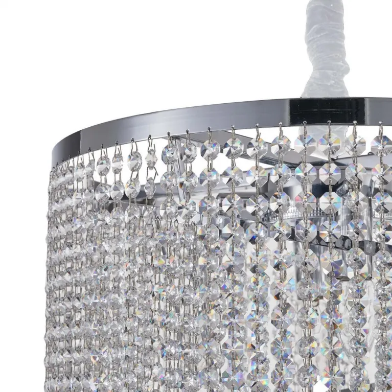 Корпус люстры выполнен из высококачественного металла с эффектным хромированным покрытием, которое придает изделию современный и стильный вид. Плафоны изготовлены из прочного и долговечного акрила, что гарантирует их долговечность и сохранение первоначального внешнего вида на протяжении долгого времени.