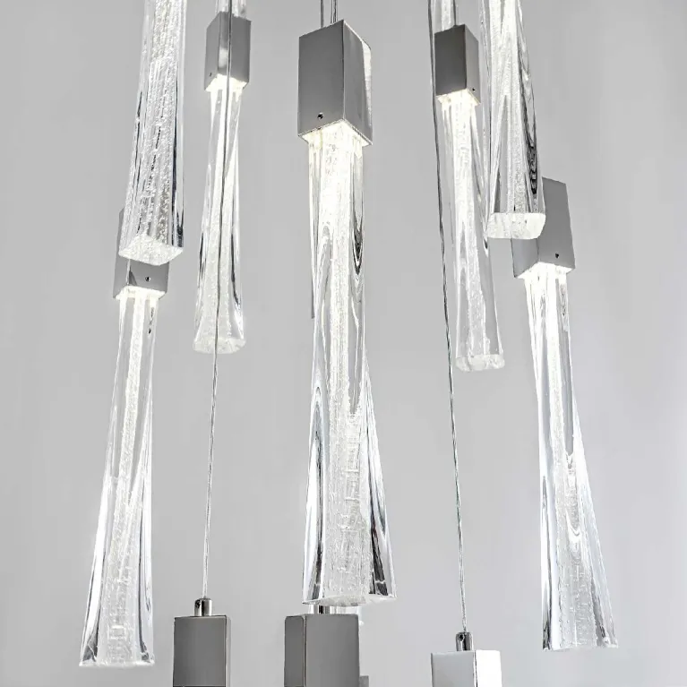 Преобладающий цвет плафонов: Прозрачный, арматуры: Хром; материал изготовления арматуры: Металл, размеры, мм: / высота 3000 / диаметр 600. Общая мощность – 155 Ватт, а максимальная площадь освещения до 25 м2. Основной тип ламп, предусмотренный производителем: Светодиодная с цоколем LED. В зависимости от предпочтений можно использовать лампы теплового, холодного или нейтрального света, за исключением люстр с типом цоколя LED.