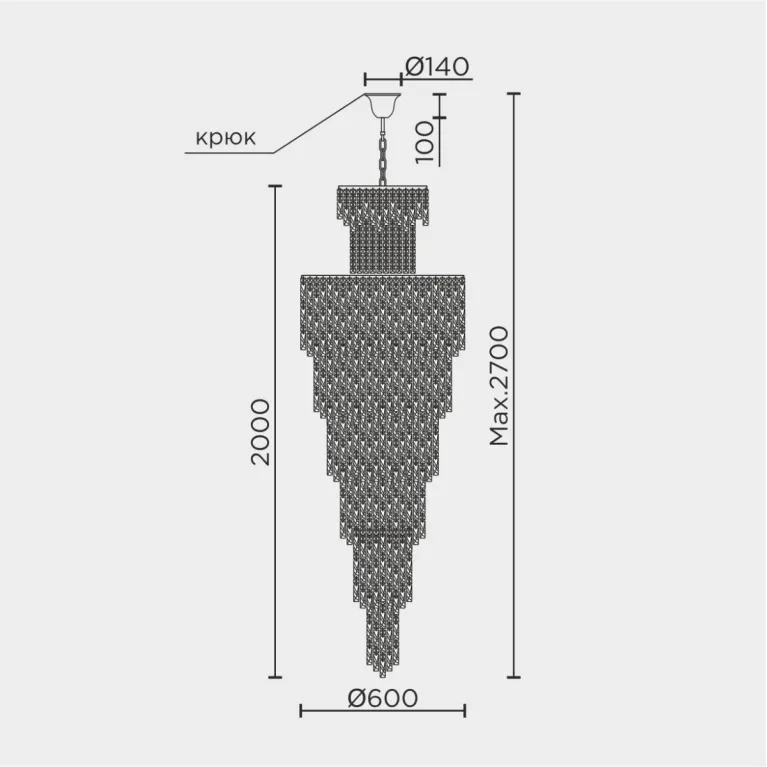 Преобладающий цвет плафонов: Прозрачный, арматуры: Хром; материал изготовления арматуры: Металл, размеры, мм: / высота 2700 / диаметр 600. Общая мощность – 1880 Ватт, а максимальная площадь освещения до 35 м2. Основной тип ламп, предусмотренный производителем: Накаливания с цоколем E14. В зависимости от предпочтений можно использовать лампы теплового, холодного или нейтрального света, за исключением люстр с типом цоколя LED.