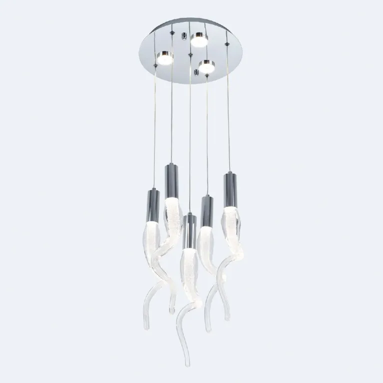 Каскадная люстра Modestyle MS.89135.5 CR китайского производителя Modelux отлично подходит для интерьеров в современном стиле, рекомендуемое помещение: Для гостинной.