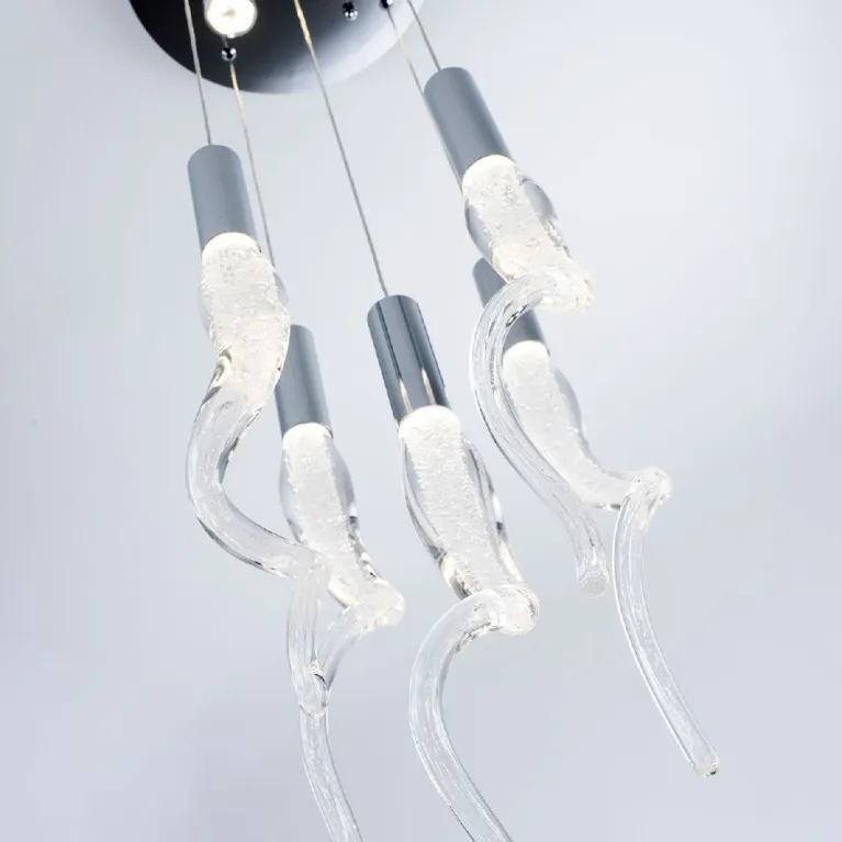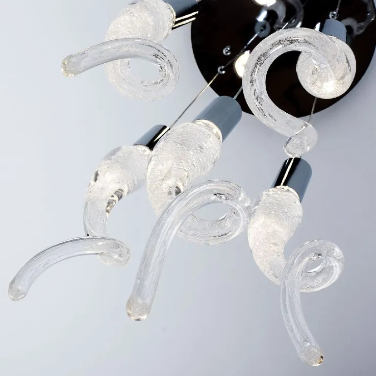 Преобладающий цвет плафонов: Прозрачный, арматуры: Хром; материал изготовления арматуры: Металл, размеры, мм: / высота 1000 / диаметр 300. Общая мощность – 40 Ватт. Основной тип ламп, предусмотренный производителем: Светодиодная с цоколем LED. В зависимости от предпочтений можно использовать лампы теплового, холодного или нейтрального света, за исключением люстр с типом цоколя LED.