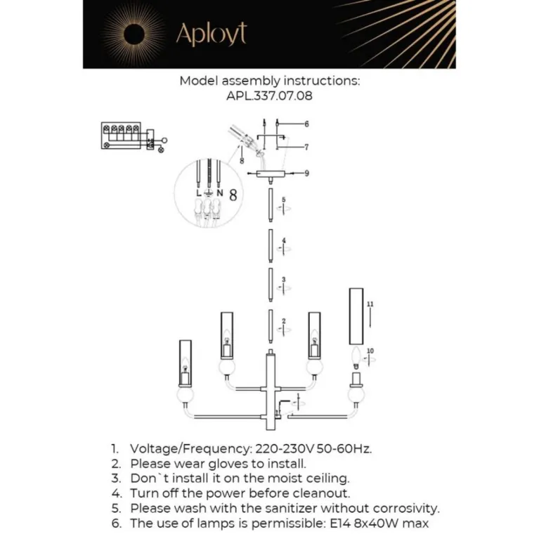 Преобладающий цвет плафонов: Прозрачный, арматуры: Латунь; материал изготовления арматуры: Металл, размеры, мм: / высота 1000 / диаметр 1000. Общая мощность – 320 Ватт. Основной тип ламп, предусмотренный производителем: Накаливания с цоколем E14. В зависимости от предпочтений можно использовать лампы теплового, холодного или нейтрального света, за исключением люстр с типом цоколя LED.
