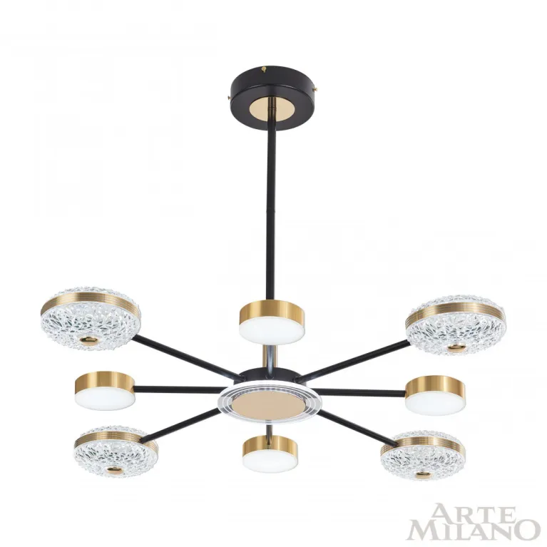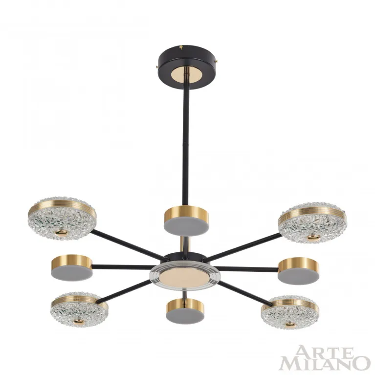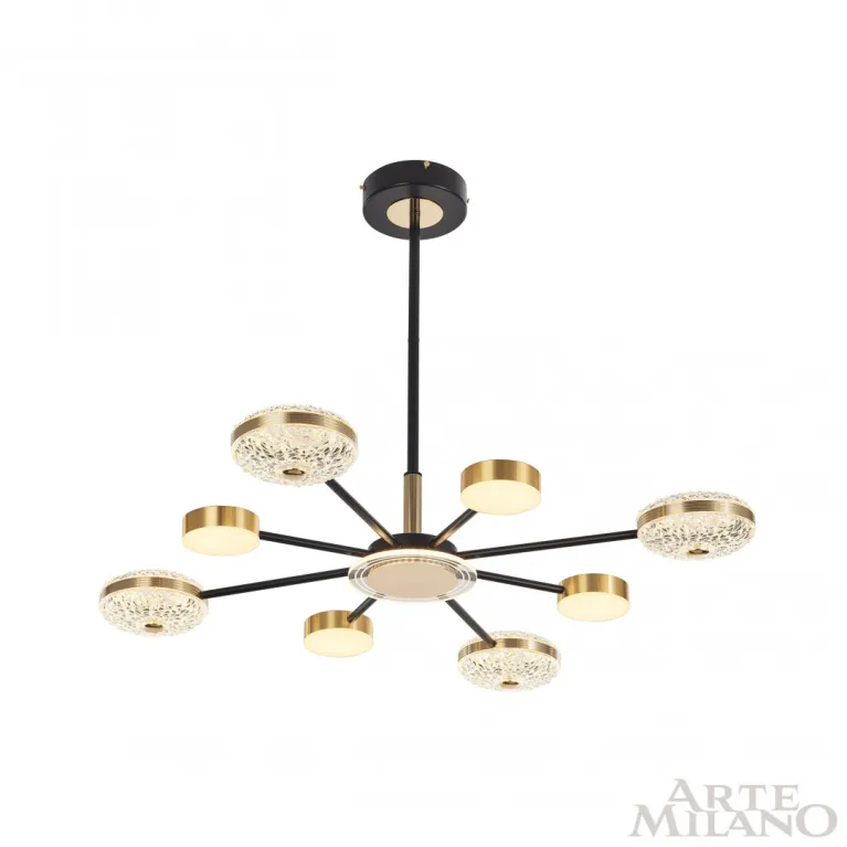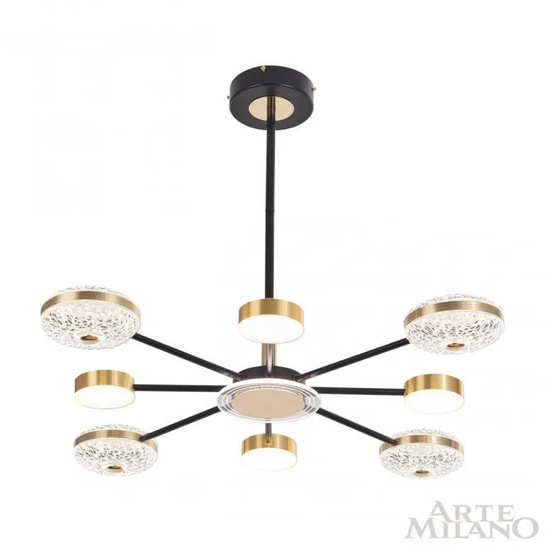 Люстра на штанге Arte Milano 272069-8 BK GD — это прекрасное решение для освещения гостиной, спальни, кухни, детской, студии, прихожей и других помещений. Она изготовлена из высококачественных материалов, что обеспечивает долговечность и надёжность работы.