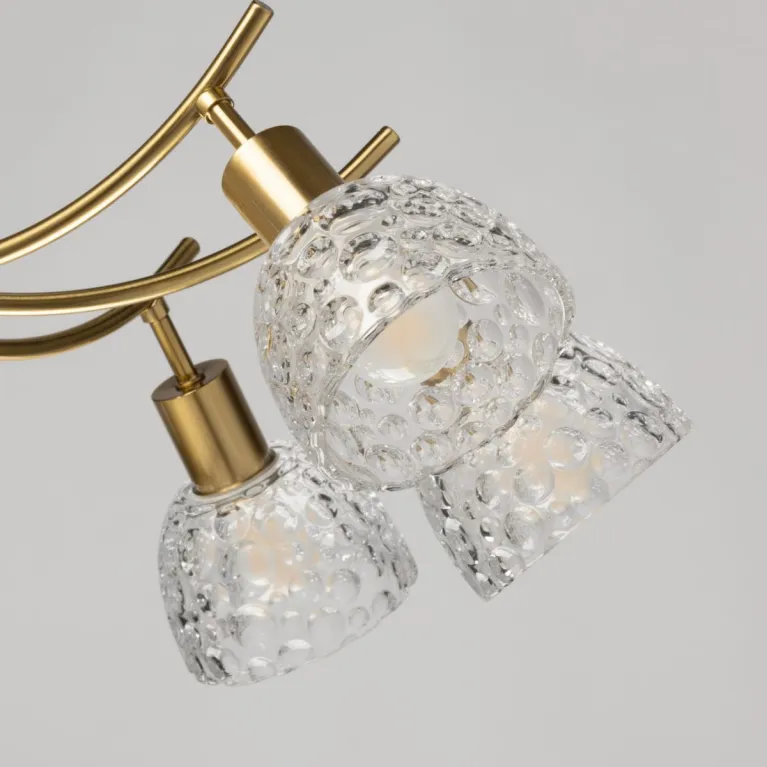 Преобладающий цвет плафонов: Прозрачный, арматуры: Бронза; материал изготовления арматуры: Металл, размеры, мм: / высота 340 / диаметр 720. Общая мощность – 320 Ватт, а максимальная площадь освещения до 24 м2. Основной тип ламп, предусмотренный производителем: Накаливания с цоколем E14. В зависимости от предпочтений можно использовать лампы теплового, холодного или нейтрального света, за исключением люстр с типом цоколя LED.