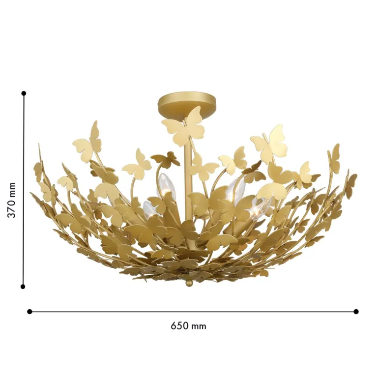 Преобладающий цвет плафонов: Золото, арматуры: Золото; материал изготовления арматуры: Металл, размеры, мм: / высота 370 / диаметр 600. Общая мощность – 240 Ватт, а максимальная площадь освещения до 12 м2. Основной тип ламп, предусмотренный производителем: Накаливания с цоколем E14. В зависимости от предпочтений можно использовать лампы теплового, холодного или нейтрального света, за исключением люстр с типом цоколя LED.