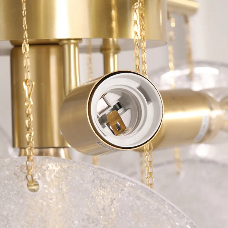 Благодаря регулируемой длине подвеса, вы сможете настроить высоту люстры под свои потребности. Цоколь E27 позволяет использовать различные типы ламп, включая декоративные. Максимальная мощность на один цоколь составляет 40 Вт, что обеспечивает яркое и равномерное освещение.