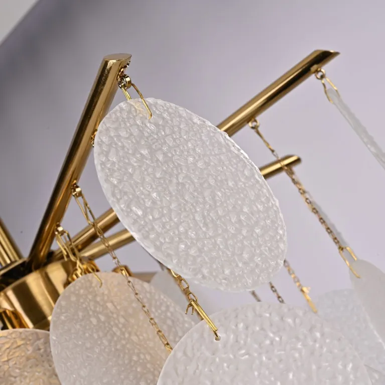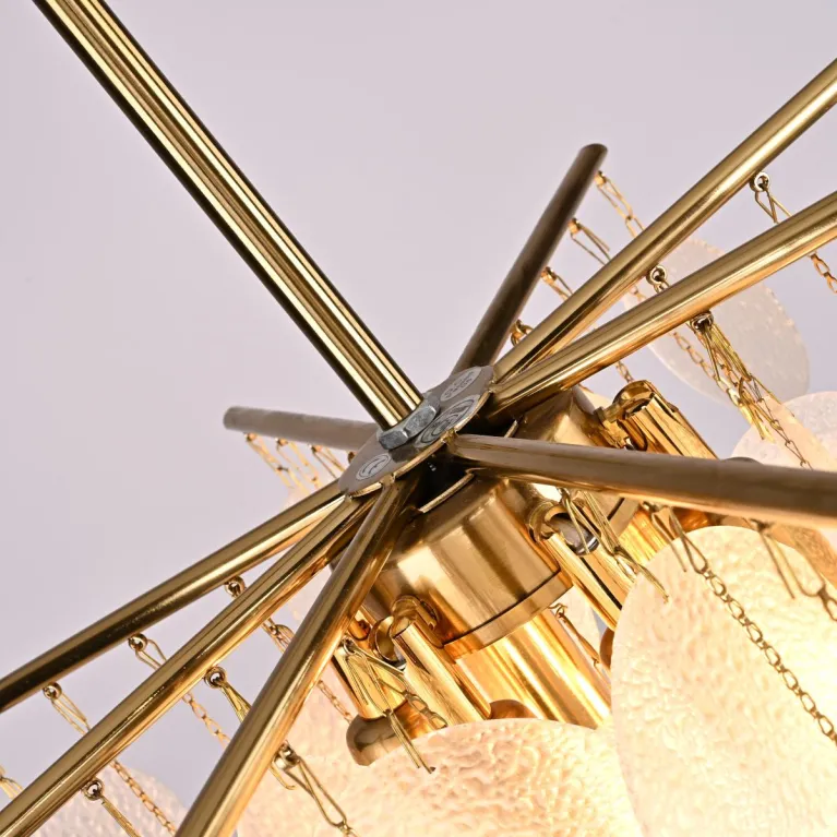 Преобладающий цвет плафонов: Белый, арматуры: Латунь; материал изготовления арматуры: Металл, размеры, мм: / высота 430 / диаметр 430. Общая мощность – 240 Ватт, а максимальная площадь освещения до 6 м2. Основной тип ламп, предусмотренный производителем: Накаливания с цоколем E14. В зависимости от предпочтений можно использовать лампы теплового, холодного или нейтрального света, за исключением люстр с типом цоколя LED.