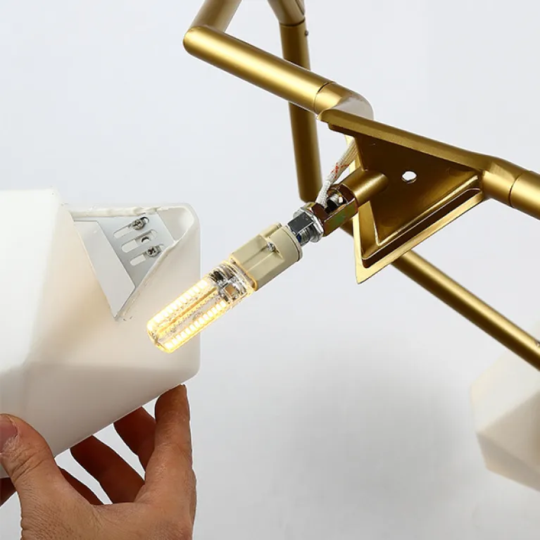 Преобладающий цвет плафонов: Белый, арматуры: Золото; материал изготовления арматуры: Металл, размеры, мм: длина 1520 / ширина 1520 / высота 470 Общая мощность – 320 Ватт, а максимальная площадь освещения до 16 м2. Основной тип ламп, предусмотренный производителем: Галогеновая с цоколем G9. В зависимости от предпочтений можно использовать лампы теплового, холодного или нейтрального света, за исключением люстр с типом цоколя LED.