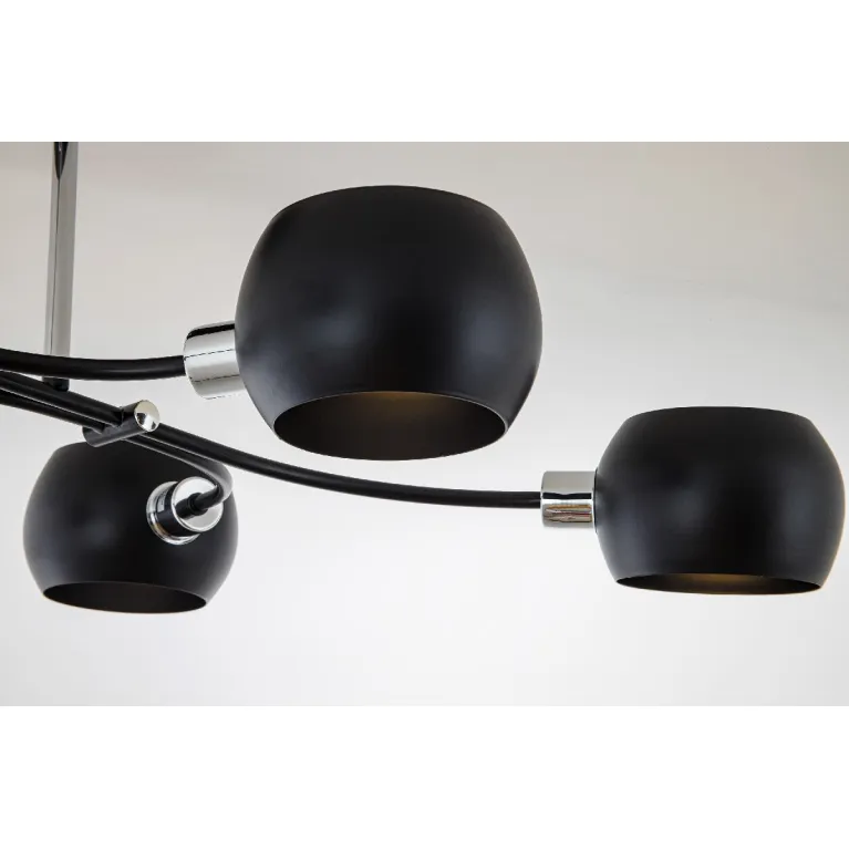 Преобладающий цвет плафонов: Черный, арматуры: Черный; материал изготовления арматуры: Металл, размеры, мм: длина 920 / ширина 520 / высота 280 Общая мощность – 240 Ватт. Основной тип ламп, предусмотренный производителем: Накаливания с цоколем E14. В зависимости от предпочтений можно использовать лампы теплового, холодного или нейтрального света, за исключением люстр с типом цоколя LED.