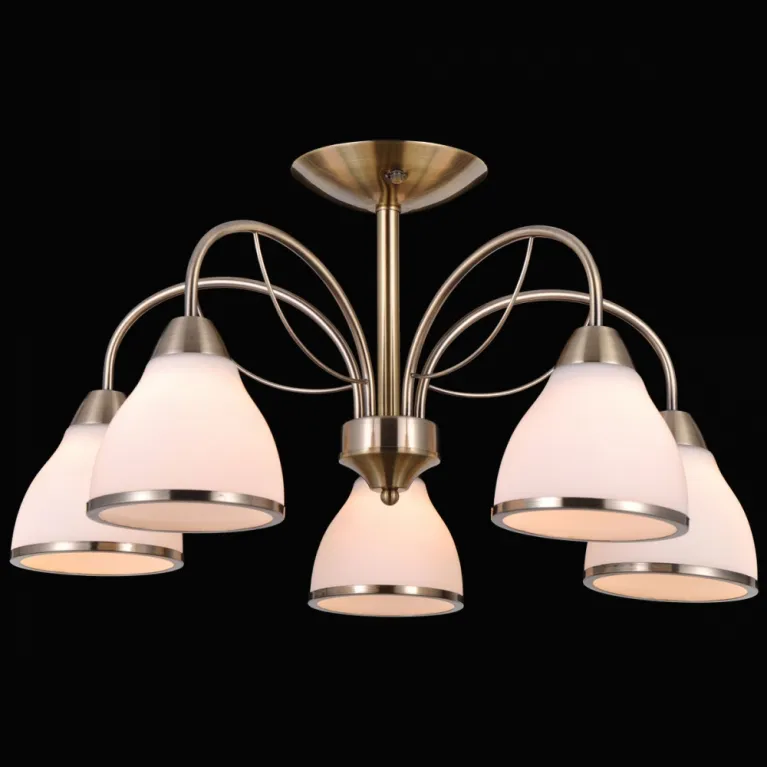 Люстра содержит пять источников света с цоколем E14, что позволяет использовать различные типы ламп, включая энергосберегающие и светодиодные. Такое количество ламп обеспечивает яркое и равномерное освещение пространства, создавая уютную атмосферу в помещении.