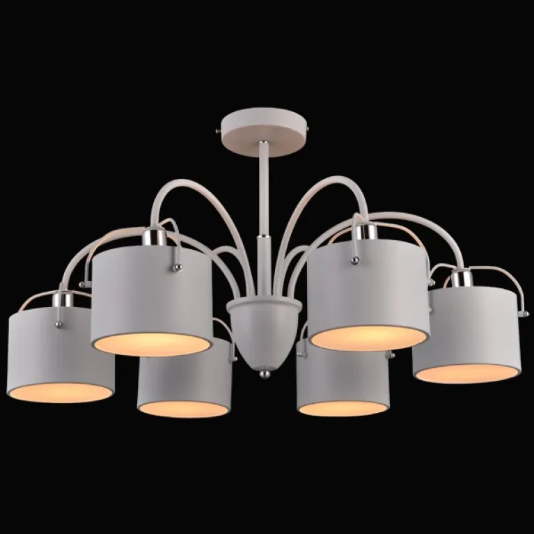 Люстра оснащена шестью источниками света с цоколем E14, что позволяет использовать лампы различного типа и мощности. Она прекрасно подходит для освещения просторных комнат площадью до 30 квадратных метров и обеспечивает яркое, равномерное рассеивание света.