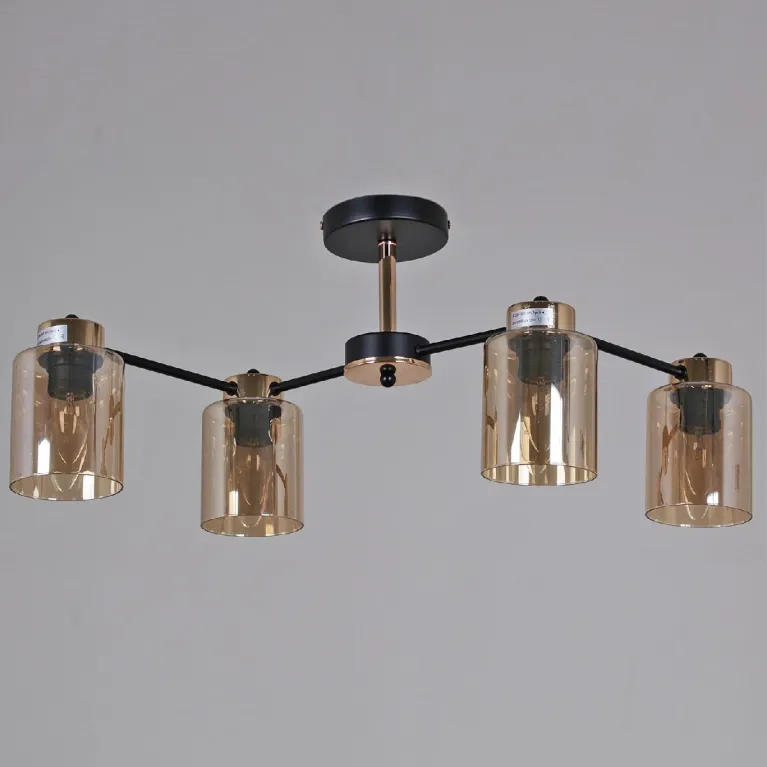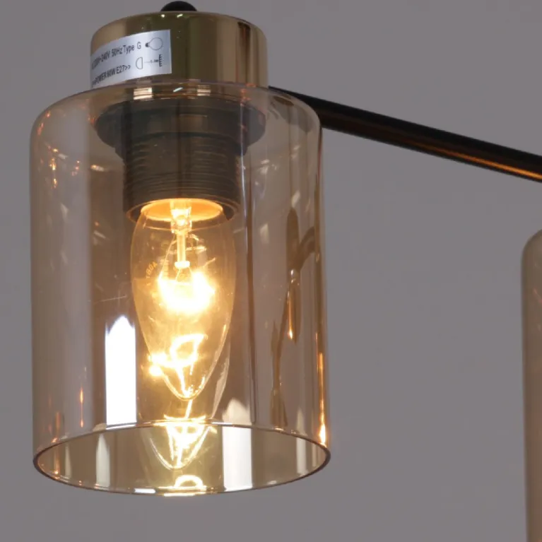 Преобладающий цвет плафонов: Янтарный, арматуры: Черный; материал изготовления арматуры: Металл, размеры, мм: длина 675 / ширина 400 / высота 270 Общая мощность – 240 Ватт, а максимальная площадь освещения до 24 м2. Основной тип ламп, предусмотренный производителем: Накаливания с цоколем E27. В зависимости от предпочтений можно использовать лампы теплового, холодного или нейтрального света, за исключением люстр с типом цоколя LED.